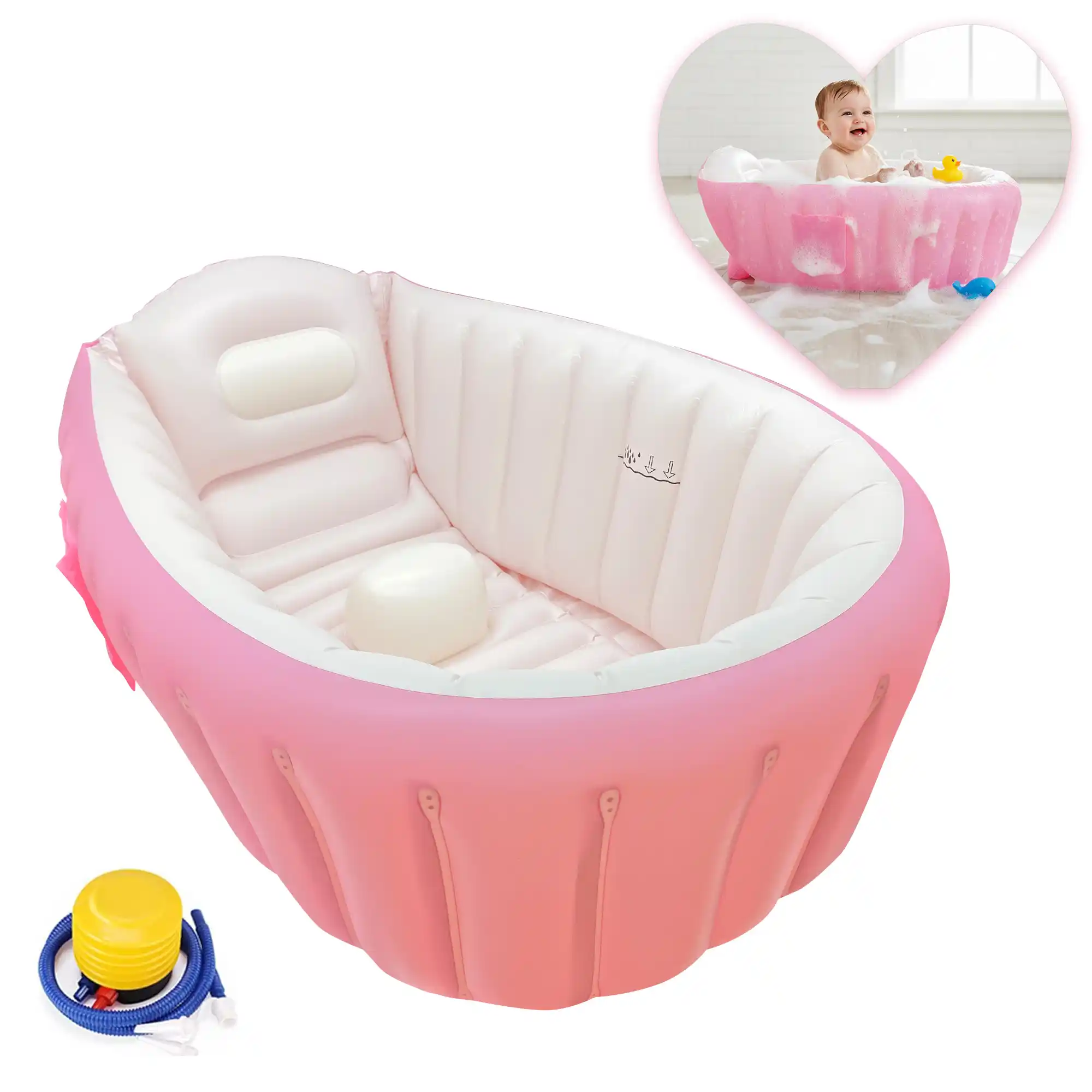 Bañera inflable para bebé con bomba EcoBaby Original color rosa