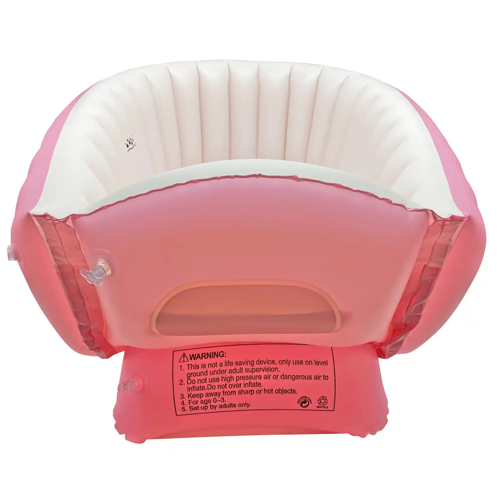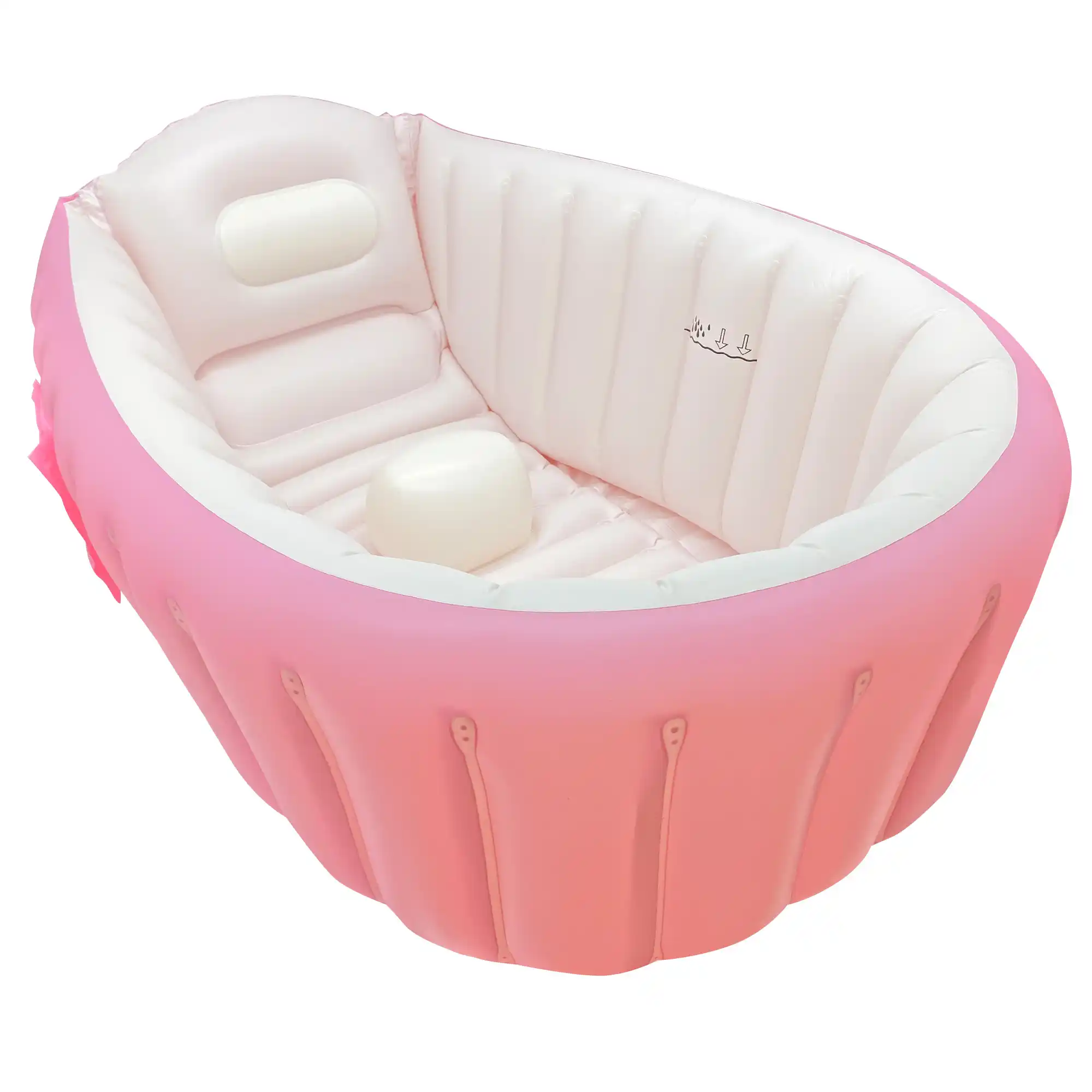 Tina inflable para bebé de 98×45×28 cm fabricada en PVC suave, duradero y no tóxico. Incluye bomba de aire, respaldo ergonómico de 45° y base antideslizante con columnas de aire para mayor seguridad. Con tapón de drenaje y bolsillos laterales, ideal para casa, viajes, playa y uso diario. Apta desde recién nacido hasta 3 años.