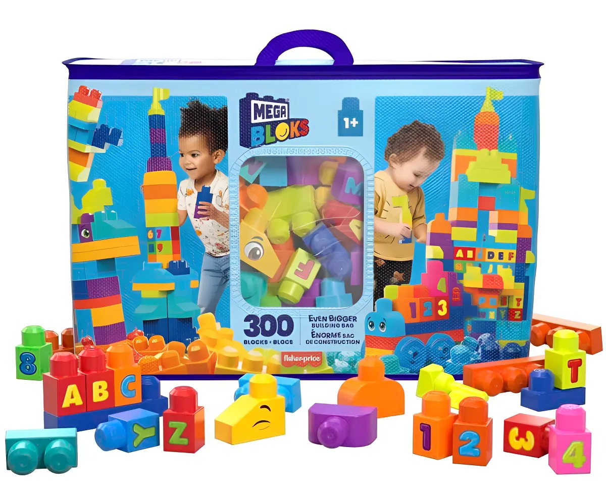 Set extragrande con 300 bloques para maximizar posibilidades de juego.