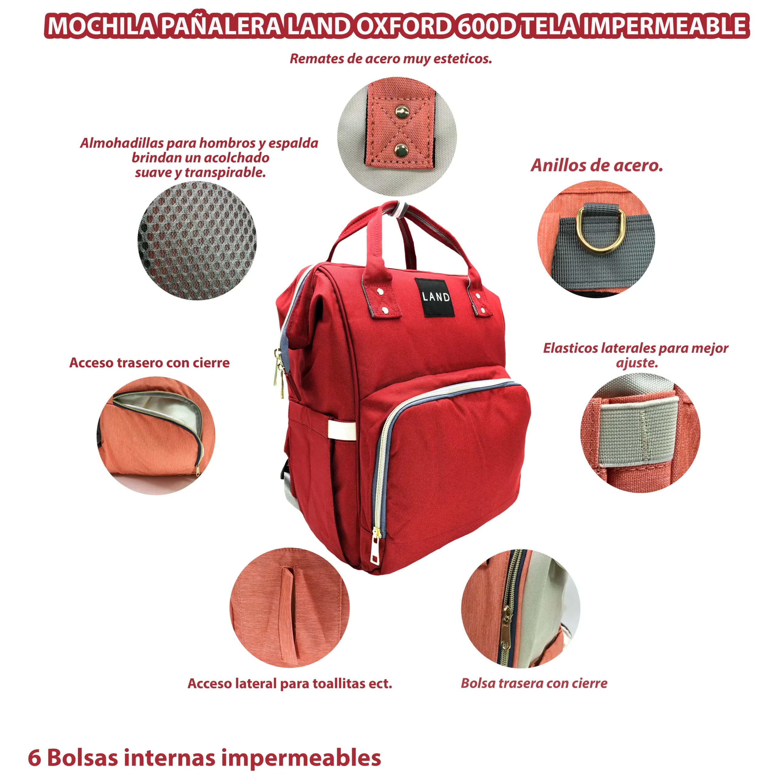 Mochila Pañalera Térmica Impermeable Oxford 600D Rojo Vino